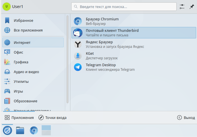 Для установки Mozilla Thunderbird откройте приложение "Пакеты", которое позволяет установить необходимое ПО из доверенного репозитория разработчика. Найдите приложение через главное меню системы "Утилиты" "Пакеты".