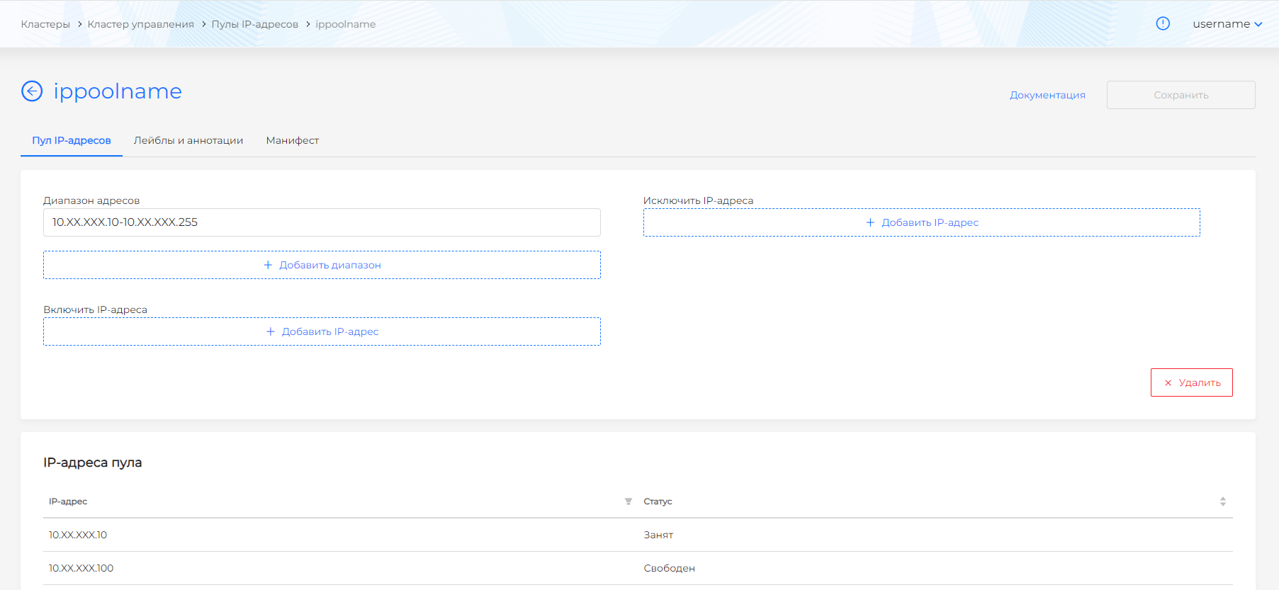 Управление пулом IP-адресов