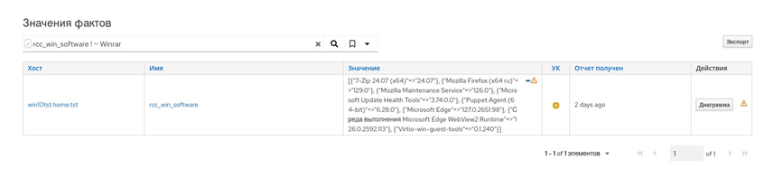 Для этого нужно открыть пункт меню "Наблюдение → Факты", найти и выбрать факт rcc_win_software, после чего отобразится список узлов с установленным на них ПО (рисунок 54).