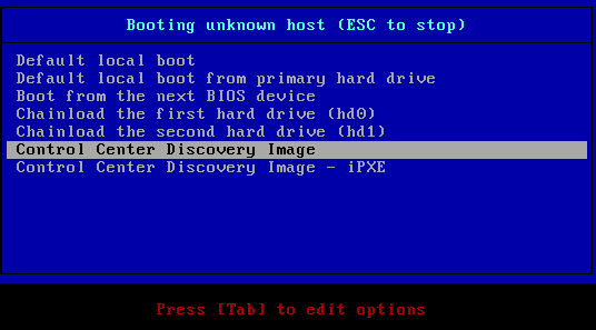 - после загрузки по сети выбрать пункт меню "Control Center Discovery Image" (рисунок 93);