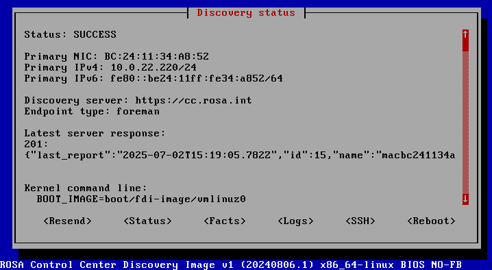 Применить; - новый узел автоматически перезагрузится и в меню PXE-загрузки теперь нужно выбрать пункт "Kickstart Rosa PXELinux" для миграции на целевую ОС (рисунок 68);