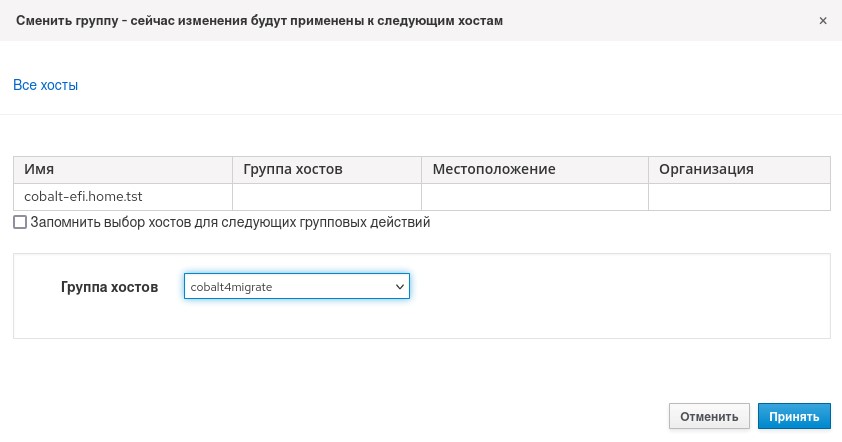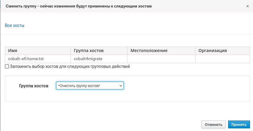 Ввиду того, что узел после окончания процедуры остался в группе миграции, его необходимо удалить из нее, как это показано на рисунке 83.