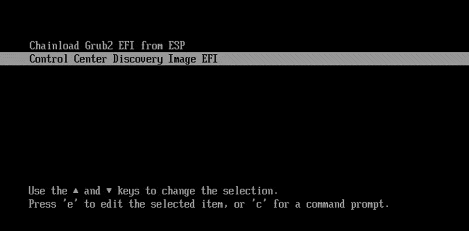 - после перезагрузки необходимо выбрать из меню загрузки (рисунок 62) пункт "Control Center Discovery Image" для перехода к процедуре миграции;