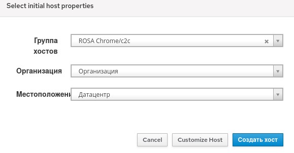 Создать узел; сервер Комплекса передаст АРМ все нужные настройки для загрузки и установки системы РОСА "Хром" по сети;