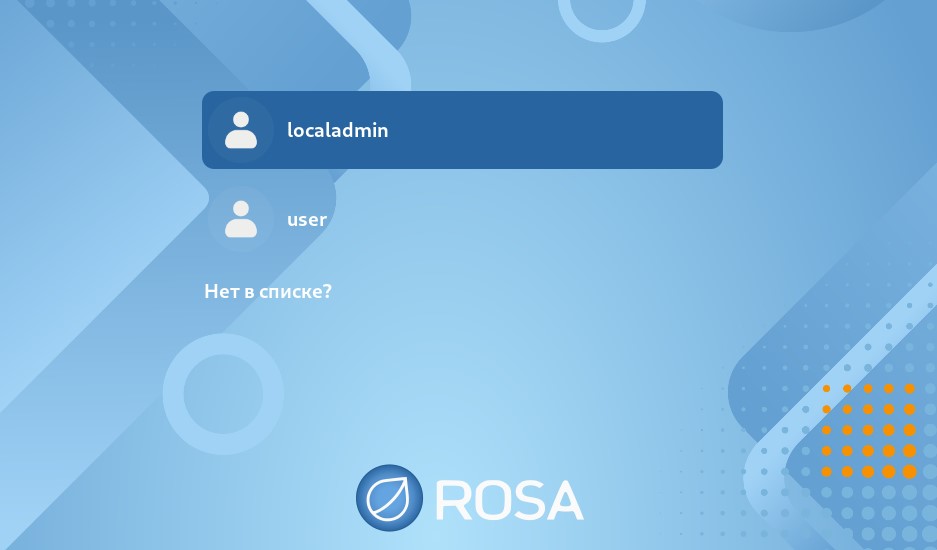 Следует обратить внимание, что после первой загрузки РОСА "Хром" не нужно входить под УЗ пользователя, так как в это время копируются пользовательские данные, а по окончании будет выполнена перезагрузка в автоматическом режиме. На экране входа отобразятся локальные пользователи, которые были ранее в ОС РОСА "Кобальт" (рисунок 81);