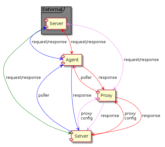 ; - Сервер → Прокси → Агент → внешний экземпляр