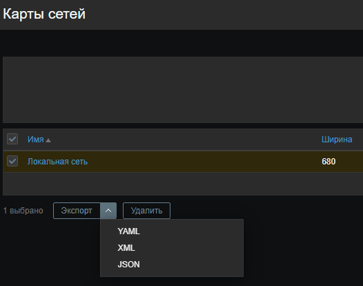 - zabbix_export_maps.yaml – при экспорте в YAML (опция по умолчанию для экспорта);
