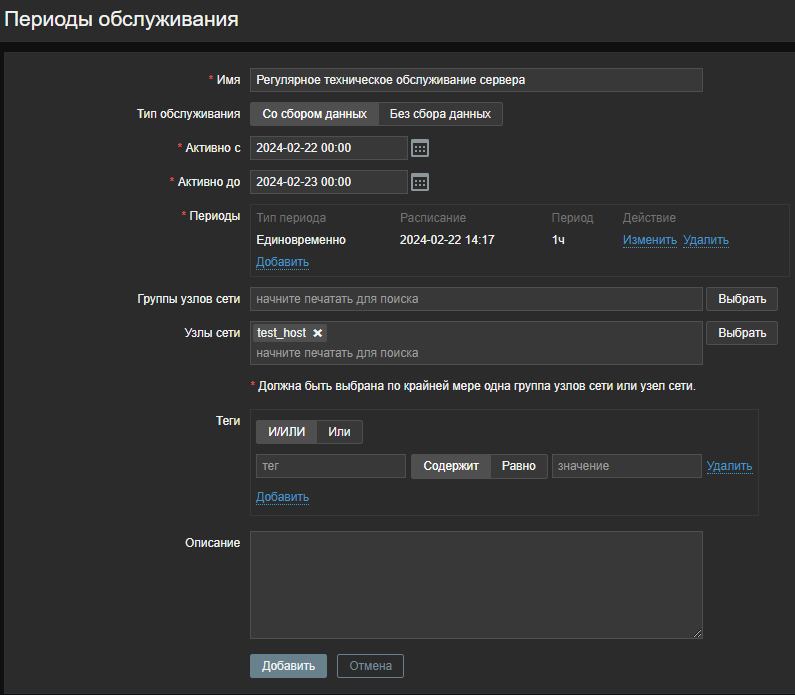 Рисунок 132 — Создание периода обслуживания