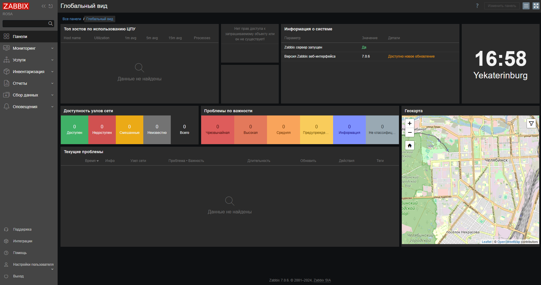 Вертикальное меню на левой боковой панели обеспечивает доступ к различным разделам веб-интерфейса Подсистемы.