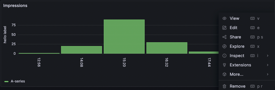 Чтобы начать с существующего запроса на панели мониторинга, выбрать "Explore (Исследование)" в меню панели в правом верхнем углу. Откроется страница "Explore (Исследование)" с запросом панели, что позволит изменить или дополнить запрос за пределами панели мониторинга (рисунок 59).