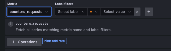 Пользовательский интерфейс также позволяет выбирать метрики, метки, фильтры и операции.