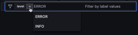 - чтобы добавить несколько значений для одной метки, выбрать один из операторов множественного выбора: "One of (Один из) (=|)" или "Not one of (Ни один из) (!=|)". Эти операторы отображаются только в том случае, если их поддерживает источник данных фильтра;