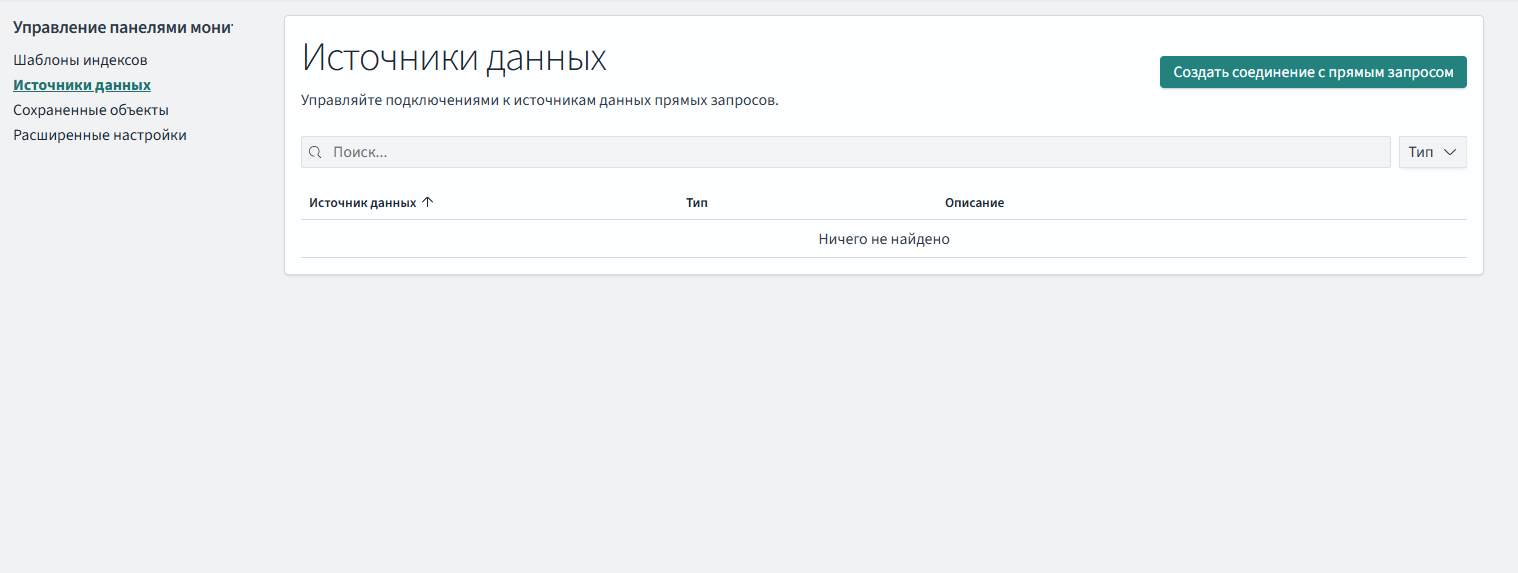 data_source.enabled в true; - подключиться к "Панелям мониторинга" и перейти в раздел "Управление панелями мониторинга Сохраненные объекты";