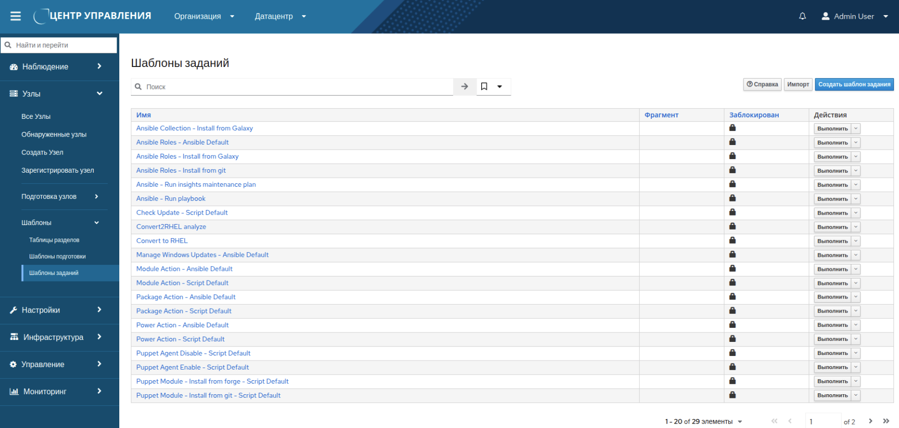 Работа с шаблонами заданий осуществляется через меню "Узлы → Шаблоны → Шаблоны заданий" (рисунок 8).