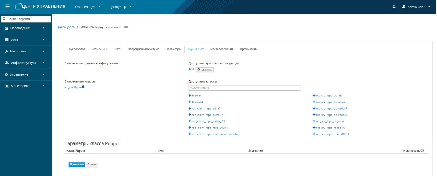 Рисунок 36 – Выбор классов Puppet для группы узлов