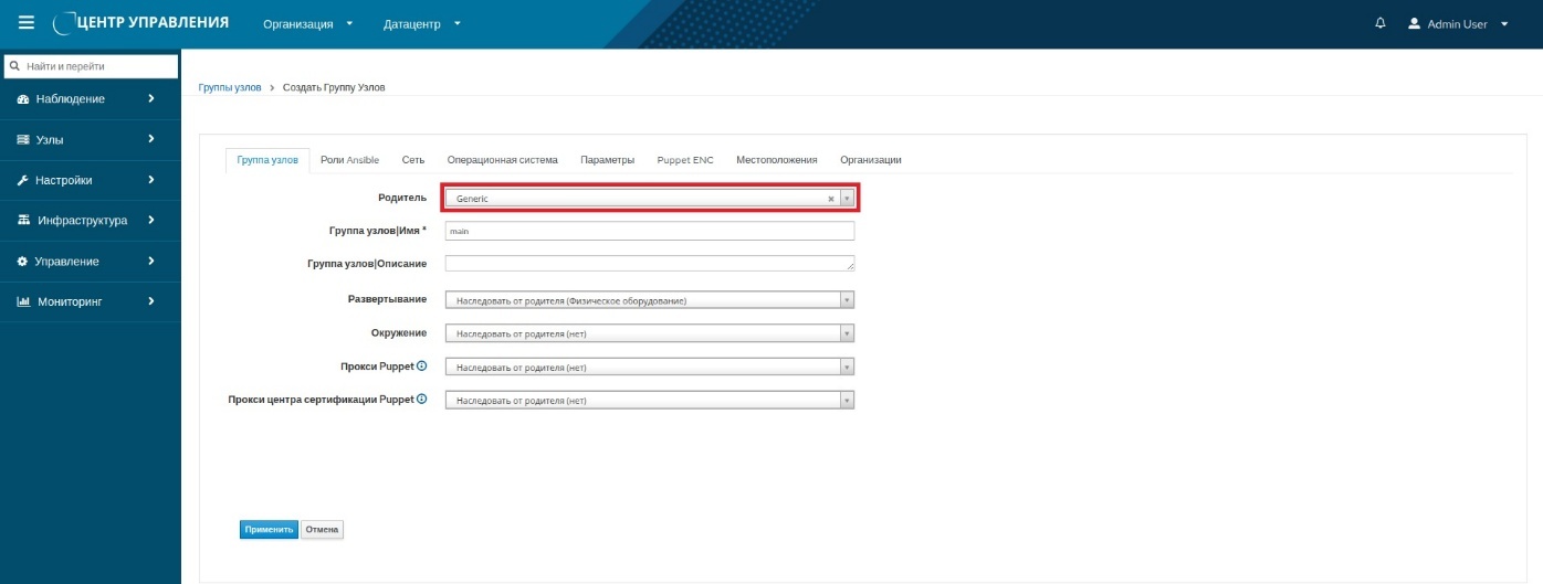Также заполняют всю информацию, относящуюся к группе, на вкладках "Роли Ansible", "Сеть", "Операционная система", "Параметры".