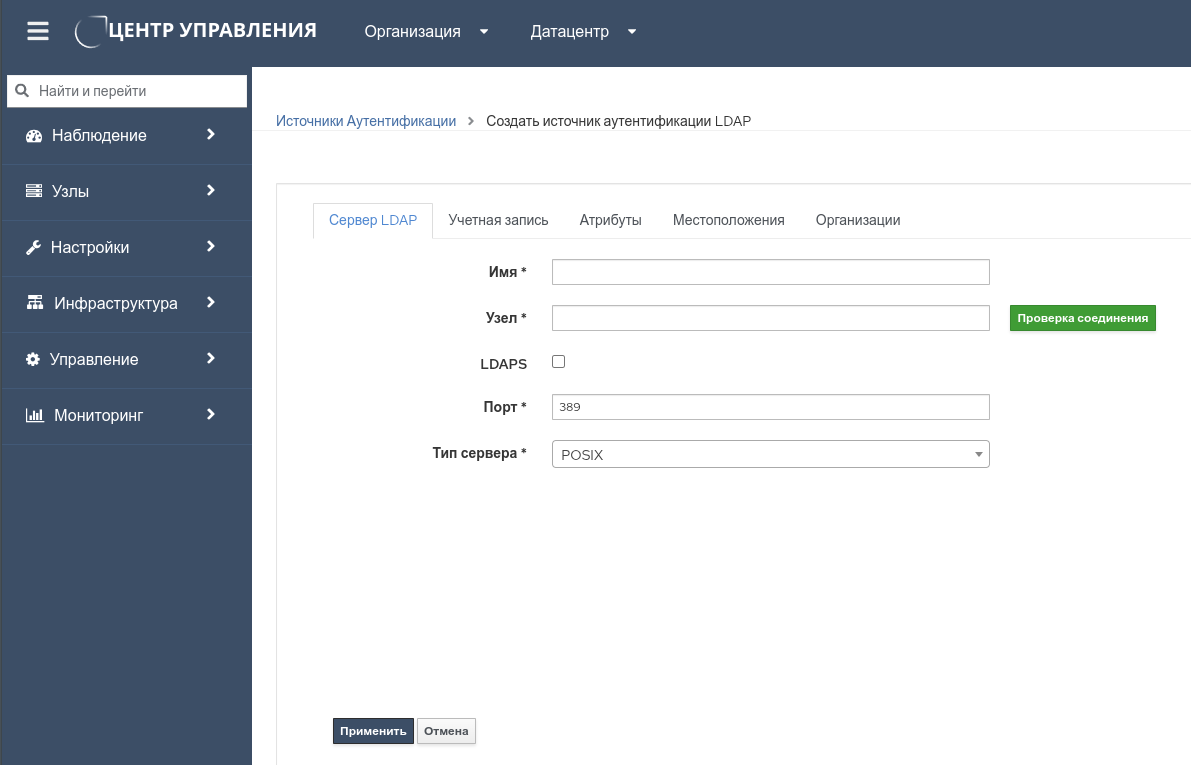 - Имя – краткое наименование подключаемой службы каталогов;