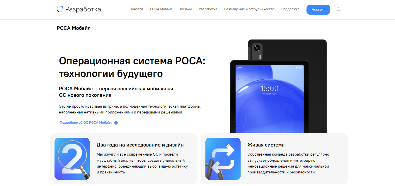 Рисунок 4 – Раздел "РОСА Мобайл"