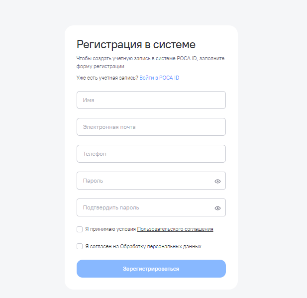 Рисунок 2 – Регистрация учетной записи в Роса ID