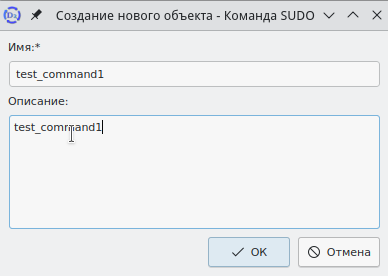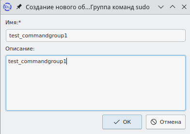 После заполнения данных команды sudo необходимо нажать кнопку ОК в нижней части окна. Окно будет закрыто, в главном окне интерфейса будут отображены записи о группе команд sudo.