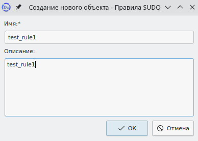После заполнения данных правила sudo необходимо нажать кнопку ОК в нижней части окна. Окно будет закрыто, в главном окне интерфейса будут отображены записи о правиле sudo.