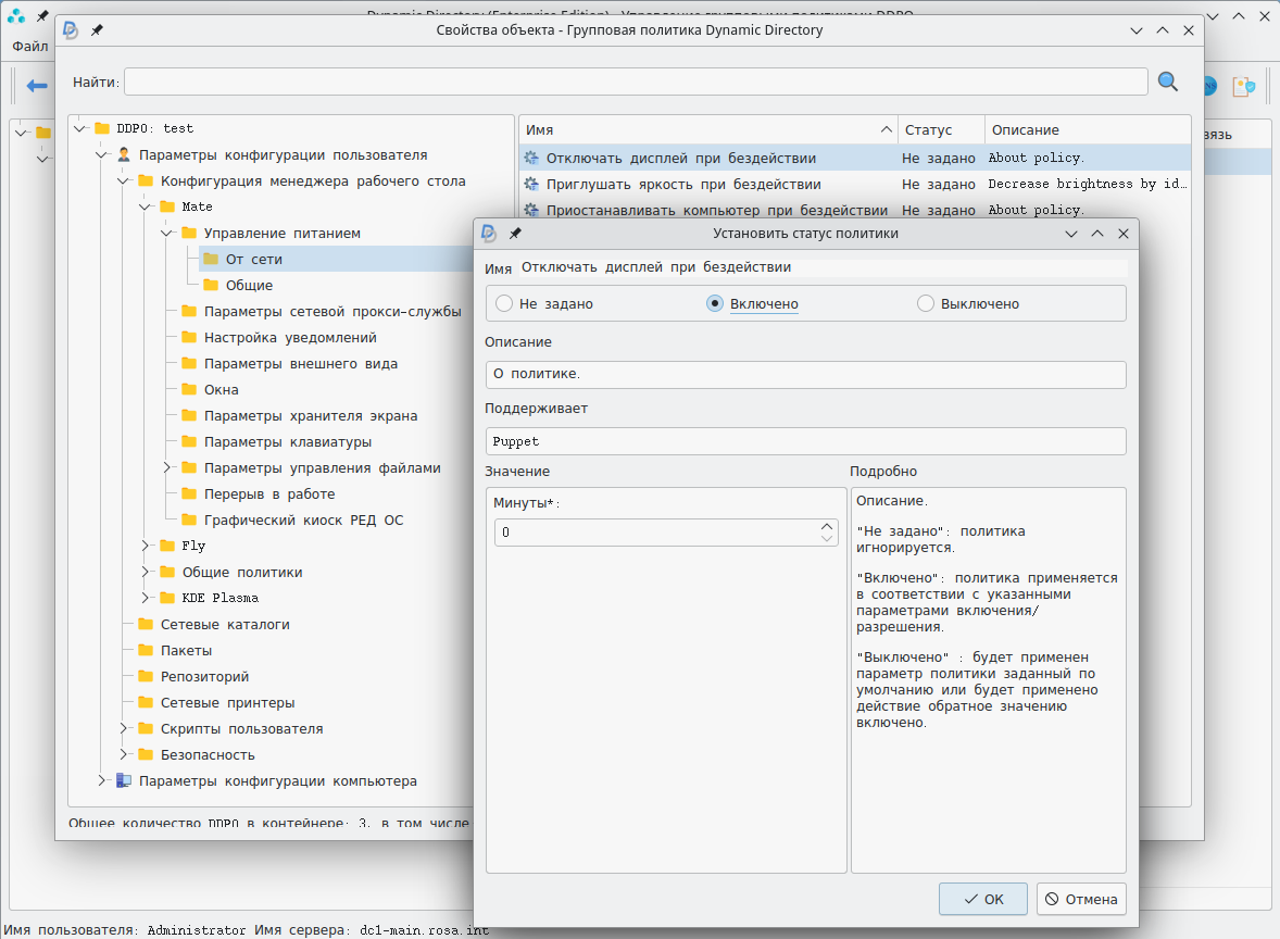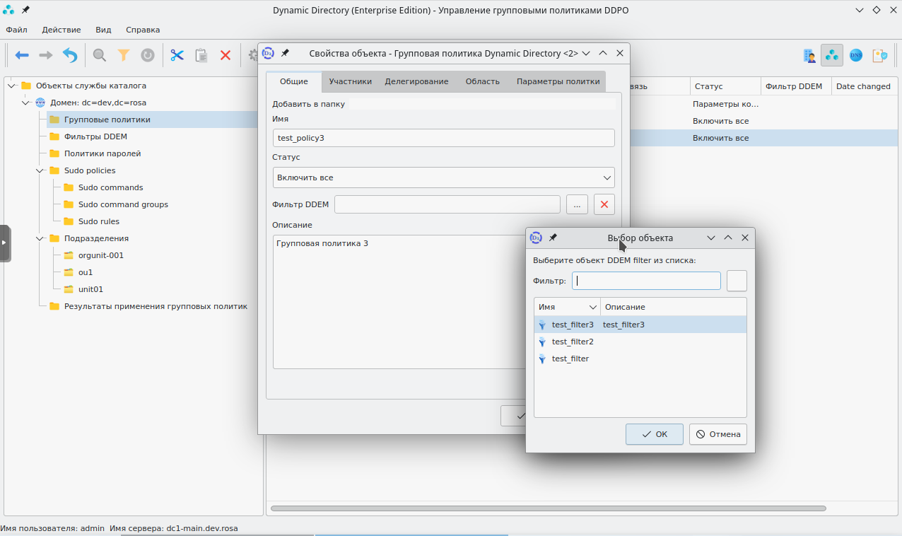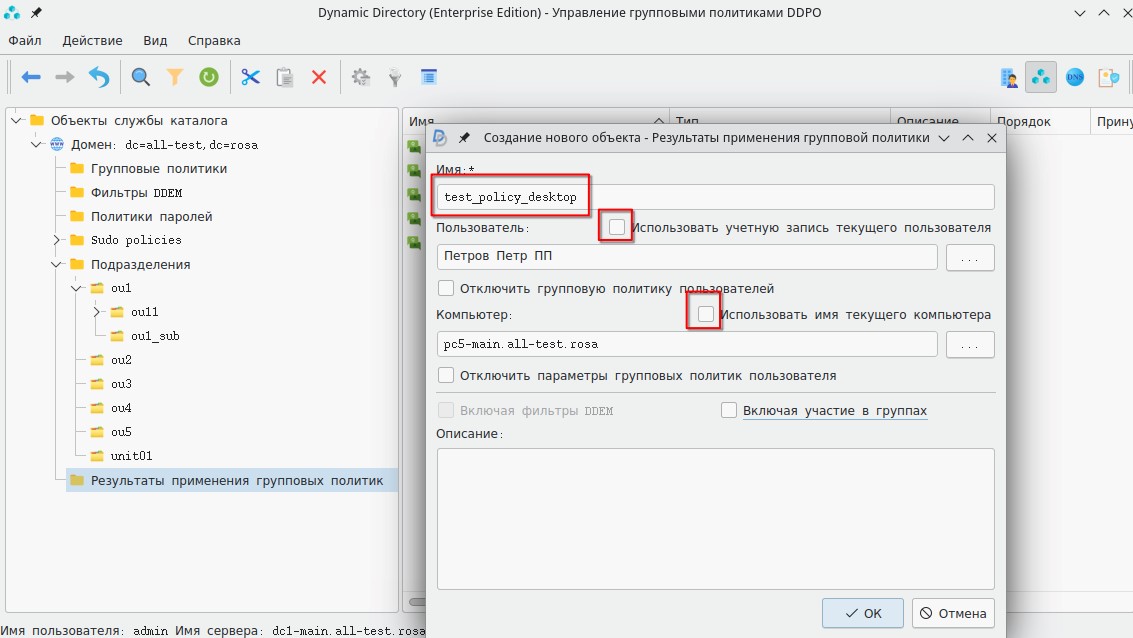 Моделирование применения политик осуществляется в графическом интерфейсе Dynamic Directory.