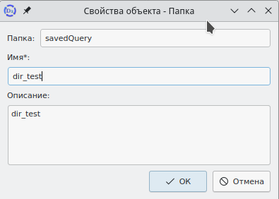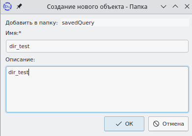 В этом окне следует ввести имя и, при необходимости, описание. Далее нужно нажать кнопку ОК для сохранения объекта. Окно будет закрыто, в главном окне интерфейса будут отображены данные папки.