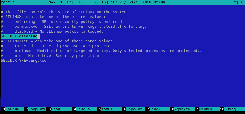 mcedit /etc/selinux/config