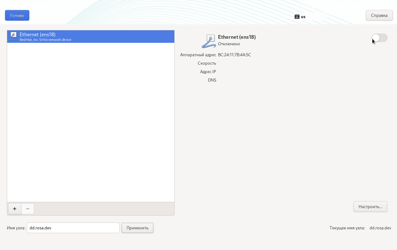 Рисунок 8 — Настройка сети