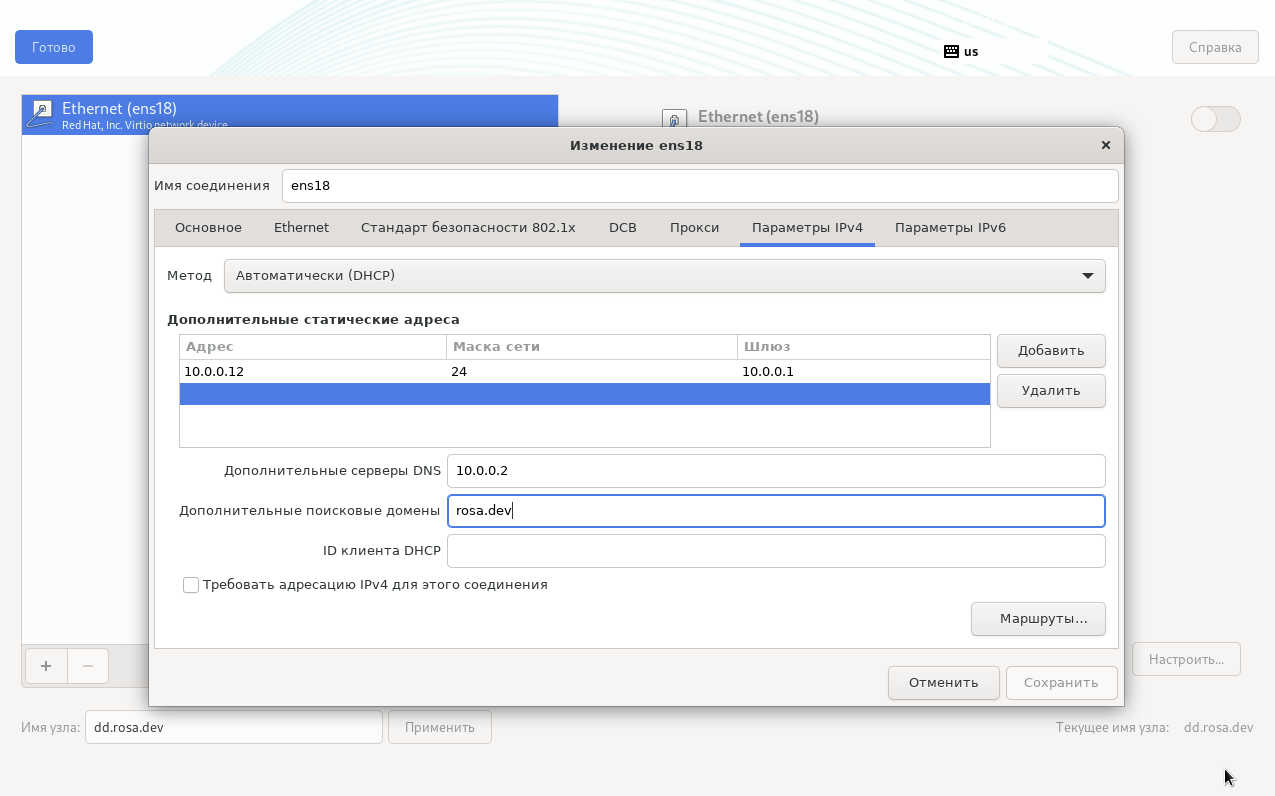 Затем в настройках сети нужно указать серверы Dynamic Directory в качестве DNS-серверов. В качестве домена поиска следует указать имя домена Dynamic Directory (рисунок 8).