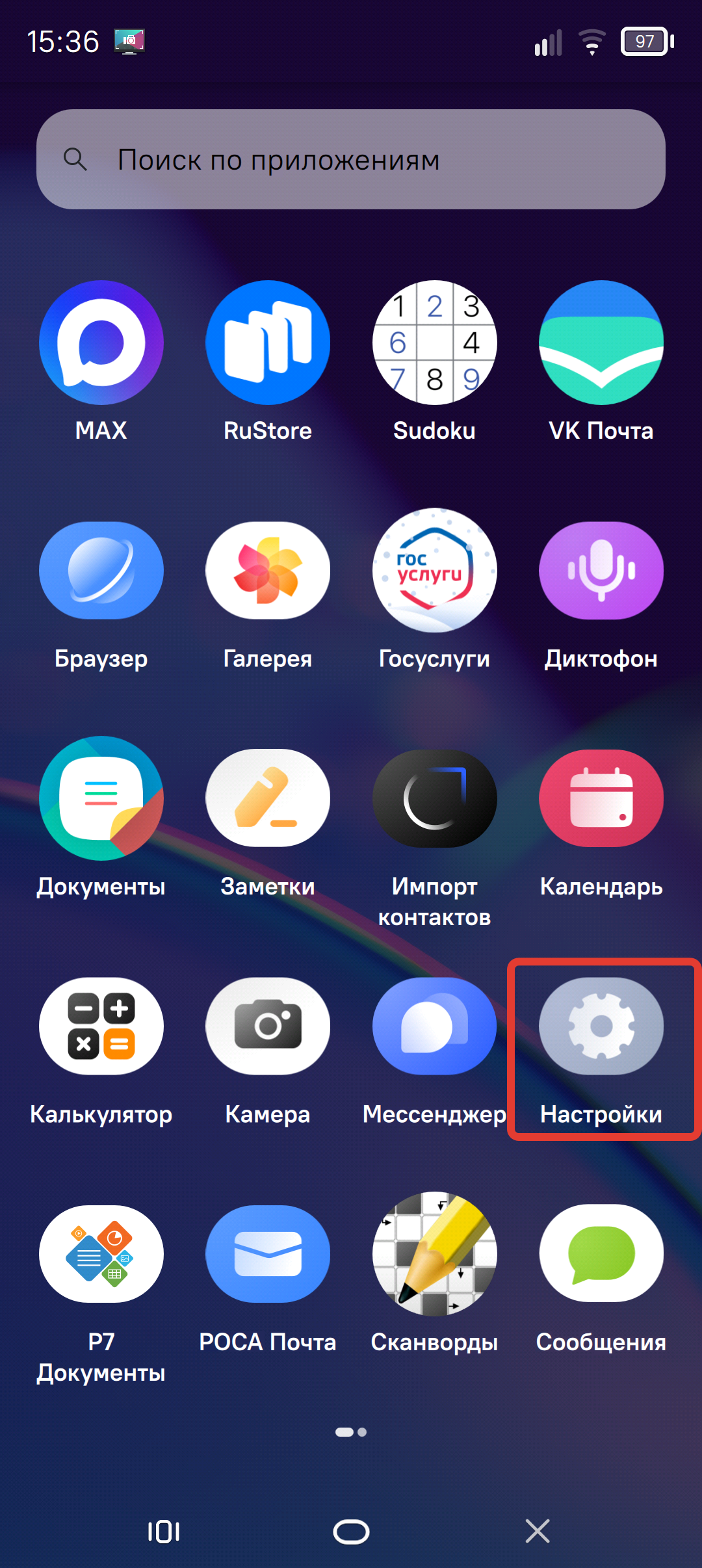 Доступ к параметрам устройства осуществляется из "Меню приложений ⟶ Настройки" (рисунок 26).