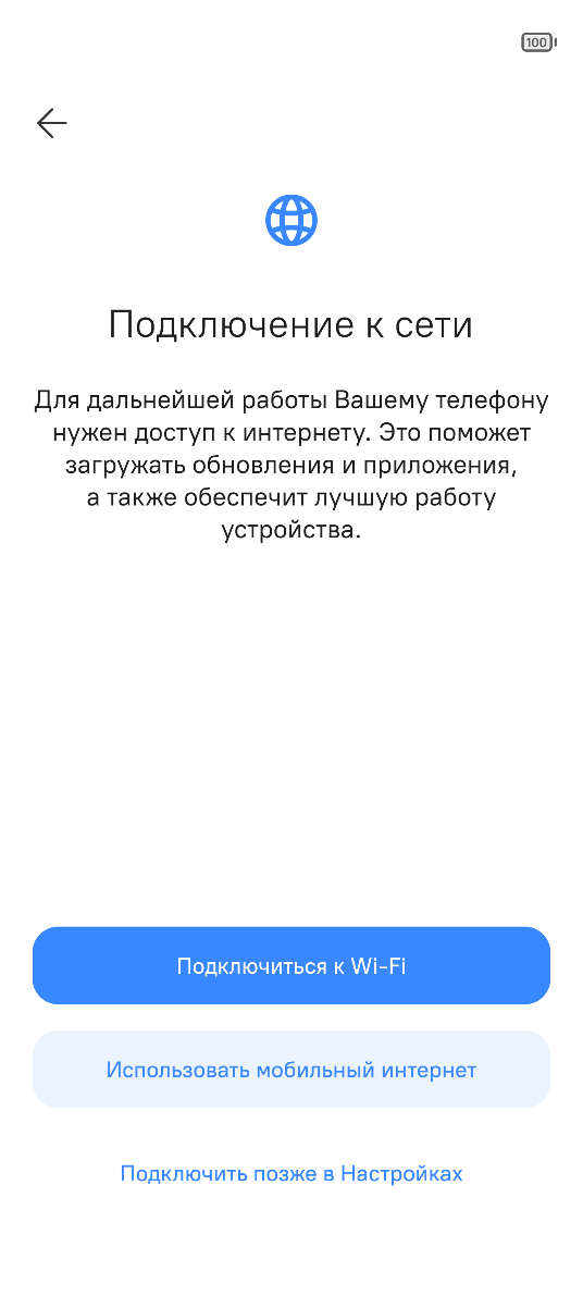 Далее Система предлагает подключиться к одной из доступных сетей Wi-Fi или использовать мобильный интернет (рисунок 2). Данный этап настройки можно пропустить по кнопке Подключить позже в Настройках и настроить позднее.