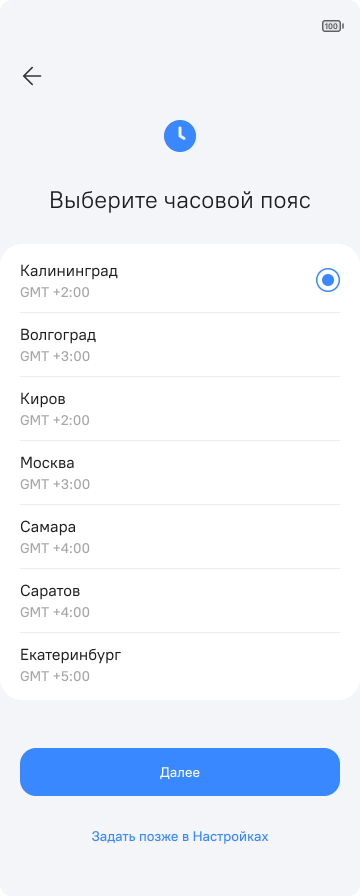 Данный этап настройки можно пропустить по кнопке Подключить позже в Настройках и настроить позднее.