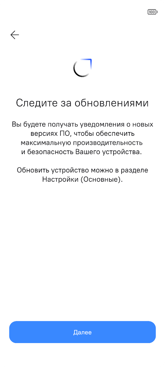 На следующем этапе первоначальной настройки Система информирует пользователя о механизме получения обновлений ОС (рисунок 6). Подробнее о том, как проверить наличие обновлений см п. Основные настройки.