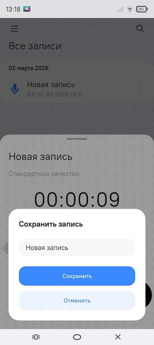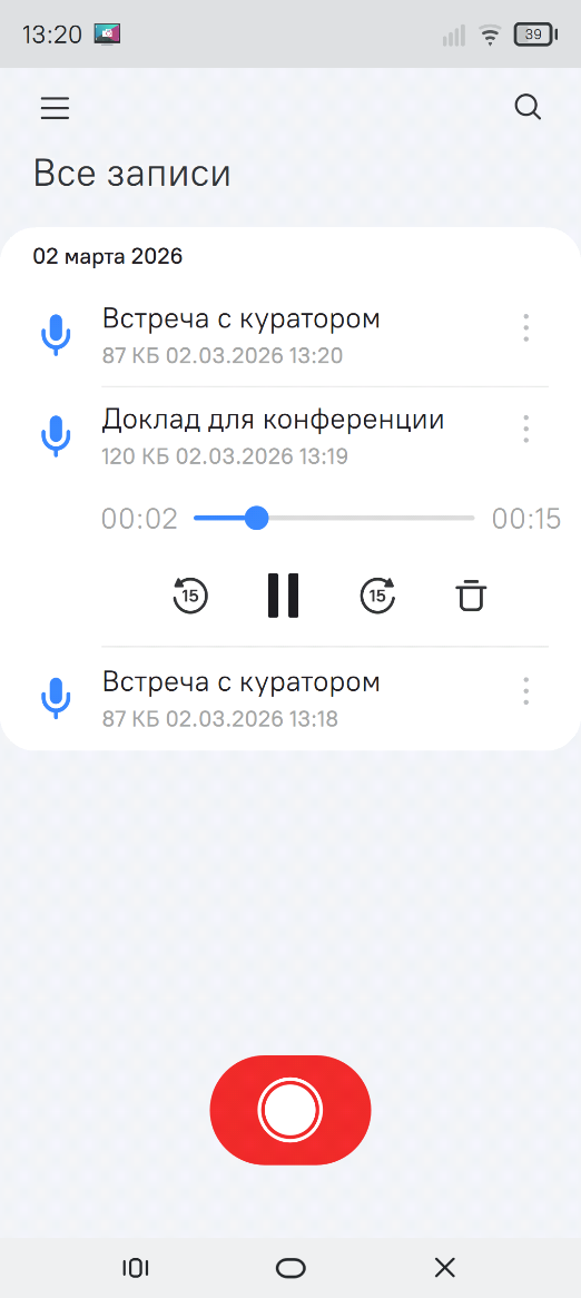 Рисунок 166 - Главный экран приложения "Диктофон"