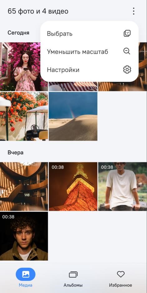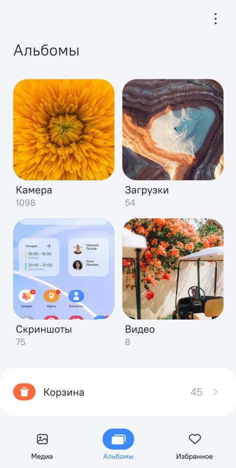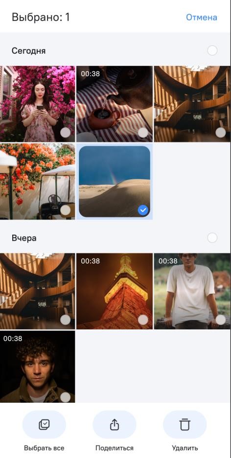 Приложение "Галерея" предназначено для хранения всех фотографий, скриншотов, изображений, видео и пр., снятых МУ или полученных из других приложений. Приложение позволяет просматривать, делиться, редактировать, перемещать и удалять мультимедийные файлы (рисунок 98).