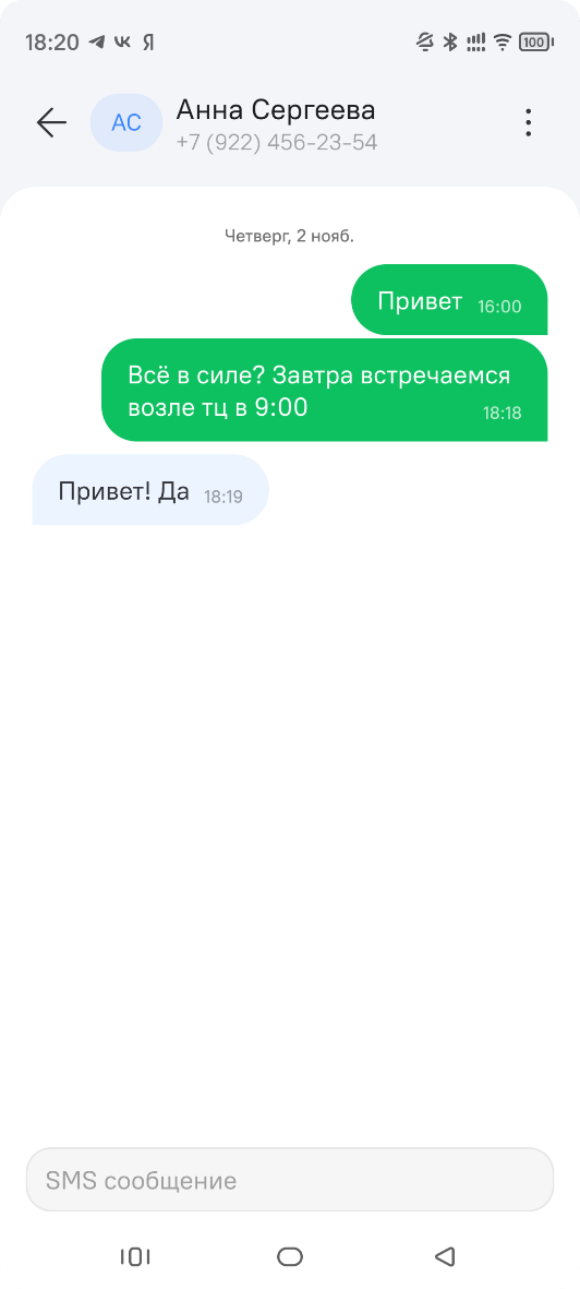 Приложение "Сообщения" предназначено для обмена текстовыми сообщениями (SMS) через мобильную сеть.