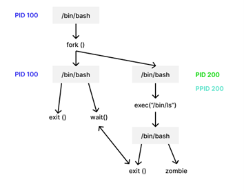 fork(); - при этом создается клон /bin/bash с новым PID (идентификатор процесса) и PPID, равный PID родителя;