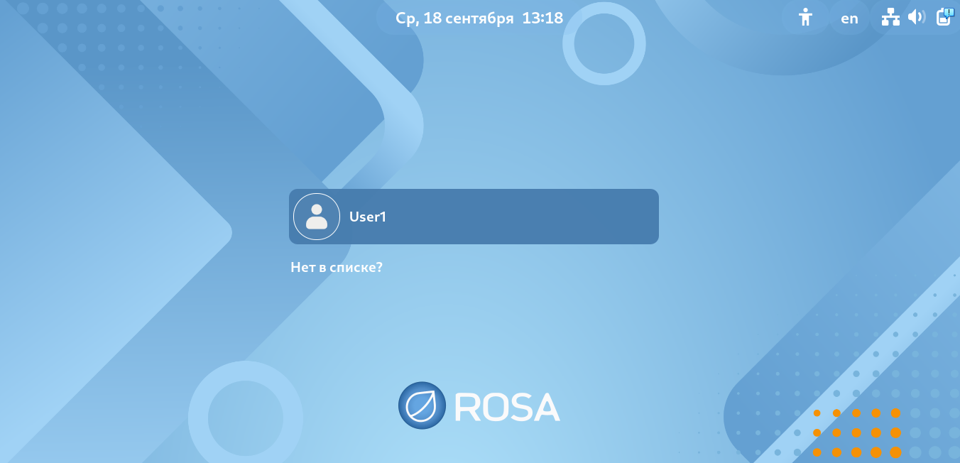 Для начала работы с ОС после ее успешной установки необходимо загрузить систему. После включения ПК Система автоматически запускает графический интерфейс входа (Рисунок 1) где пользователю будет предложено выбрать из списка (или ввести для входа на другой домен) свою учетную запись.