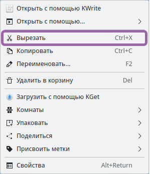 - выбрать в контекстном меню "Вырезать" (Рисунок 63) или нажать