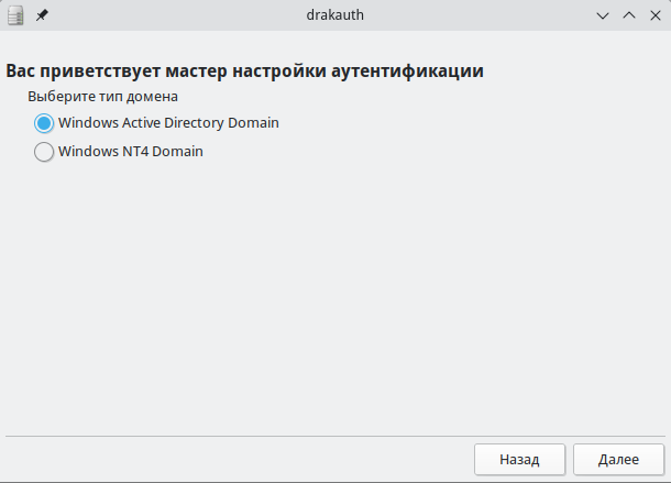 Рисунок 17 – Выбор типа домена в графическом интерфейсе drakauth