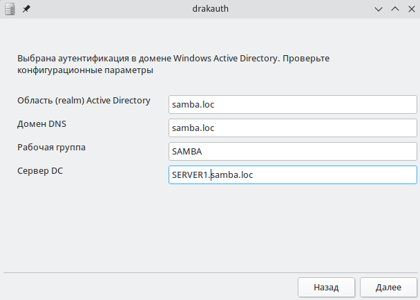 - убедиться, что поля домена и сервера заполнены автоматически (рисунок 18). При необходимости внести корректировки;