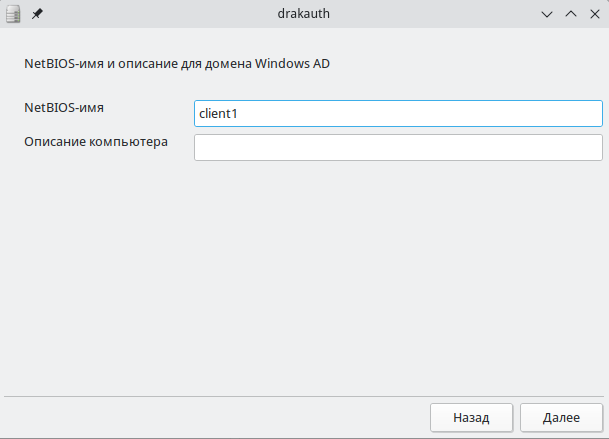 - указать имя NetBIOS, например client1; поле "Описание компьютера" заполнять необязательно (рисунок 19);