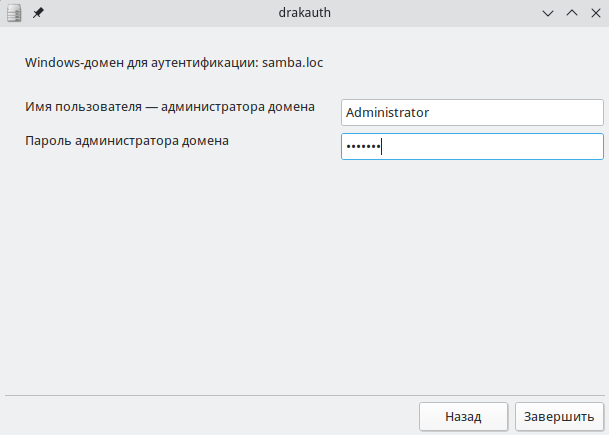 Рисунок 20 – Назначение логина и пароля для администратора домена в графическом интерфейсе drakauth