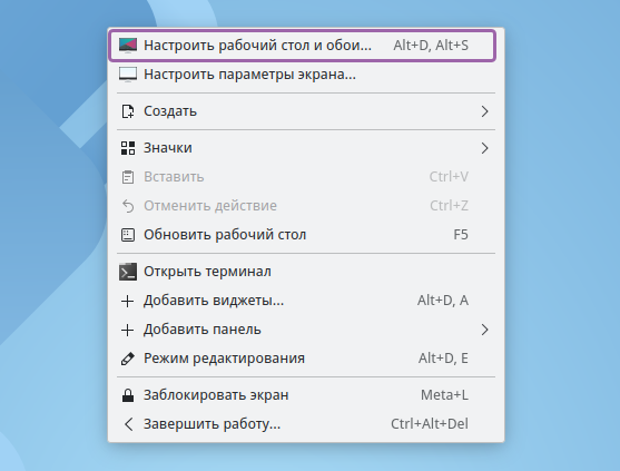 Рисунок 21 - Контекстное меню рабочего стола