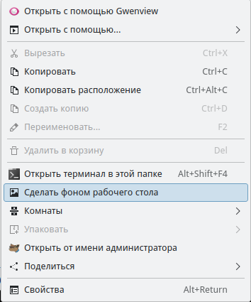 Также можно изменить обои путем перетаскивания изображения на рабочий стол. Для этого нужно навести курсор "мыши" на файл с изображением и переместить его на рабочий стол, удерживая левую кнопку "мыши"; в появившемся меню выбрать пункт "Сделать фоном рабочего стола" (Рисунок 23).