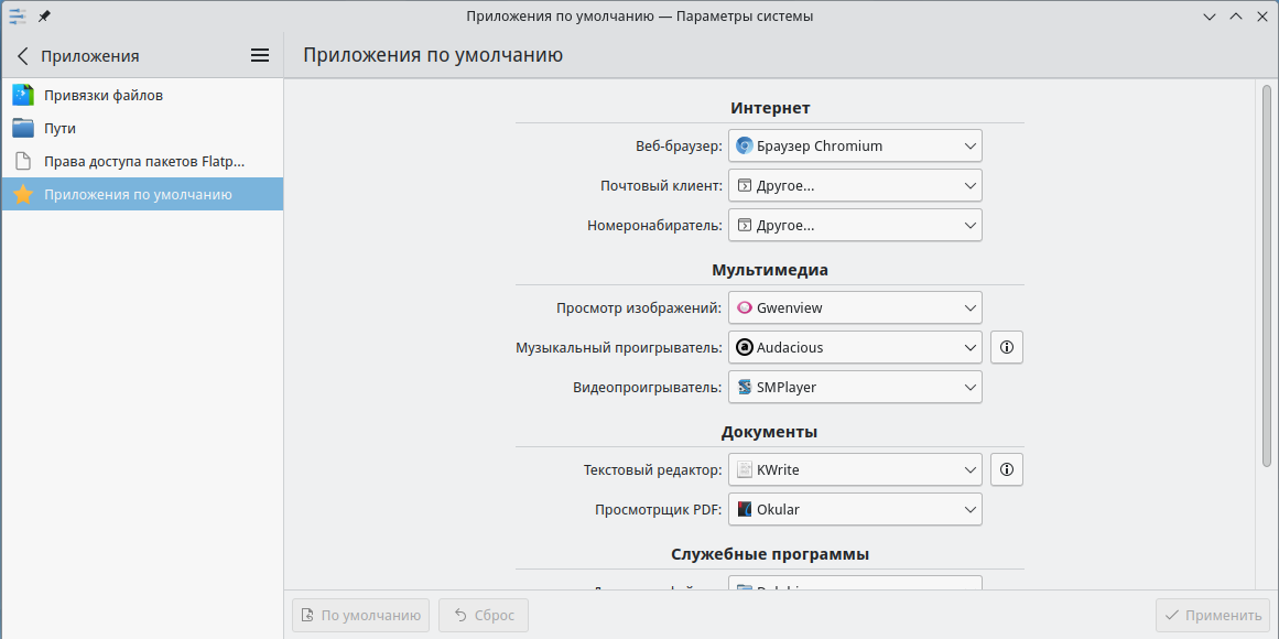 Приложения по умолчанию
