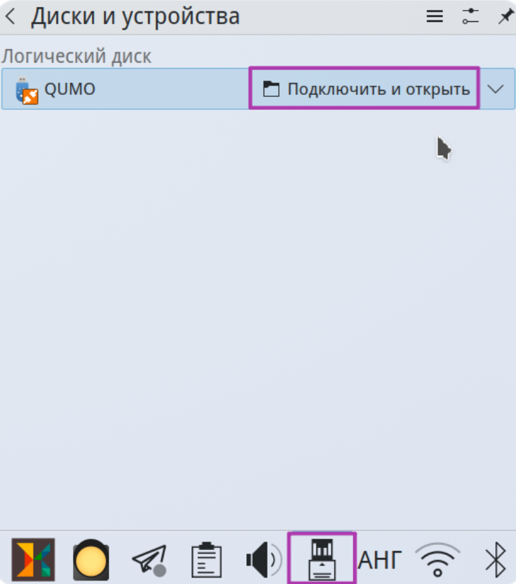 Если оранжевый значок отсутствует, то необходимо перед отключением устройства выбрать действие "Безопасно извлечь", для чего в разделе "Подключаемые устройства" нажать на пиктограмму