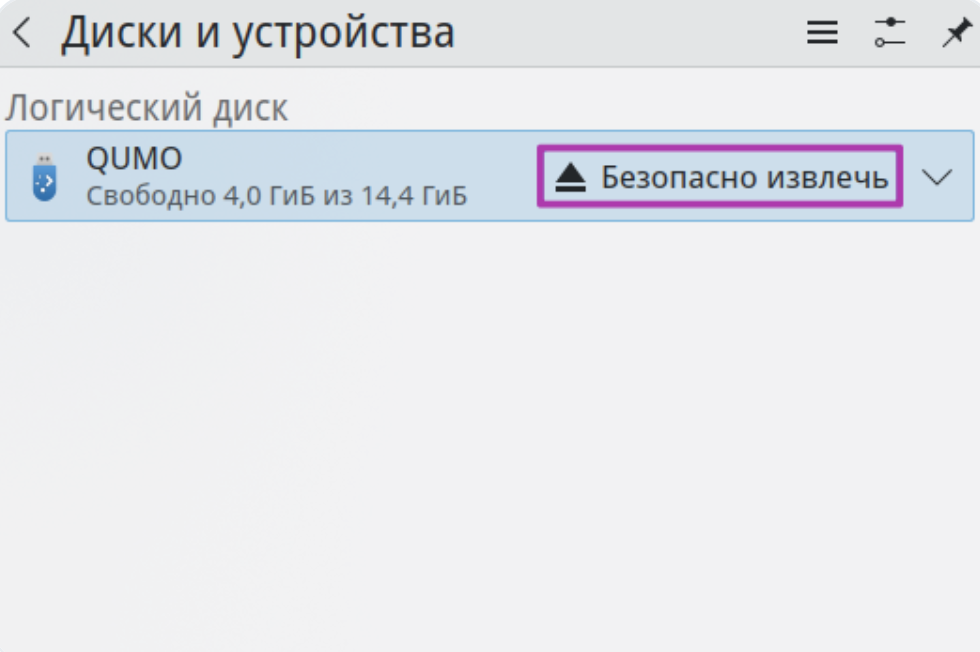 рядом с устройством или выбрать действие "Безопасно извлечь", нажав на значок
