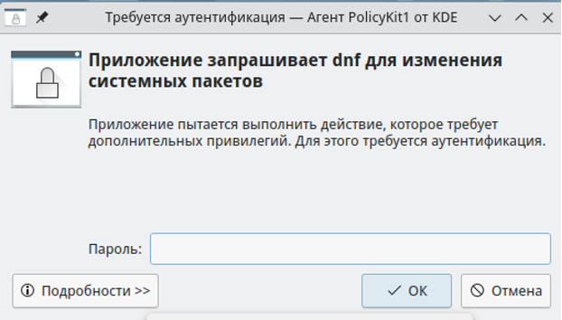 Рисунок 50 - Дополнительная аутентификация для установки пакетов